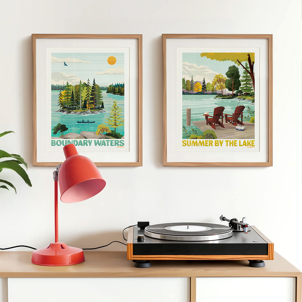 This serene and colorful art print captures the untouched beauty of Minnesota’s Boundary Waters Canoe Area Wilderness—a place of quiet lakes, towering pines, and starlit skies. Whether you’ve paddled through its waters or simply dream of the Northwoods, this piece brings the peace and wonder of the BWCA into your home.