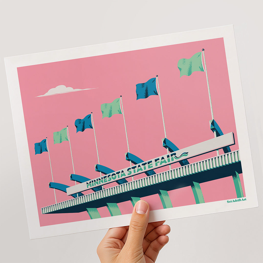 This stylized illustration is a tribute to the nostalgia and energy of fair season—perfect for any Minnesotan at heart.
